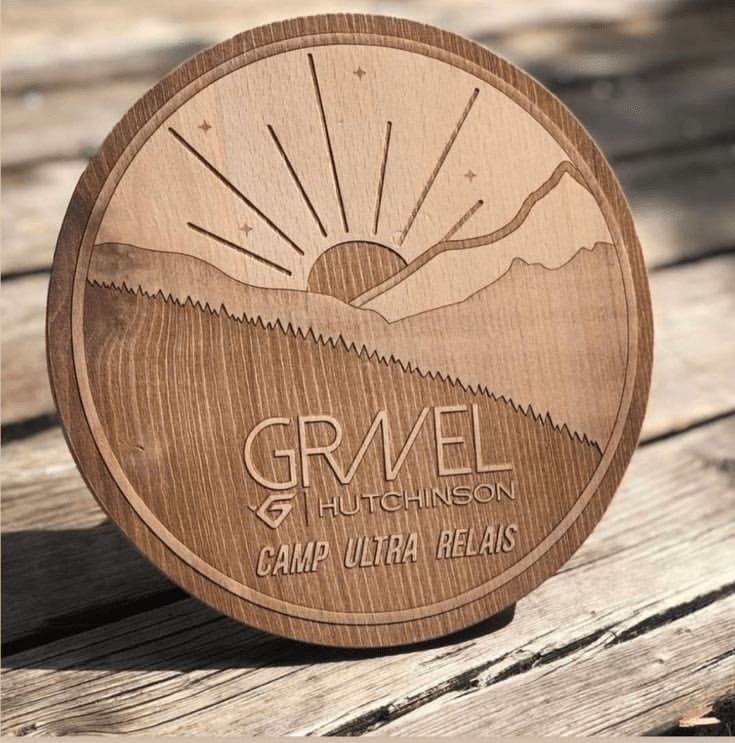 Création du logo de l’épreuve Gravel Hutchinson lors du Vélo Vert Festival 2020. Il a pu être décliné sur différent supports, notamment ce trophée.