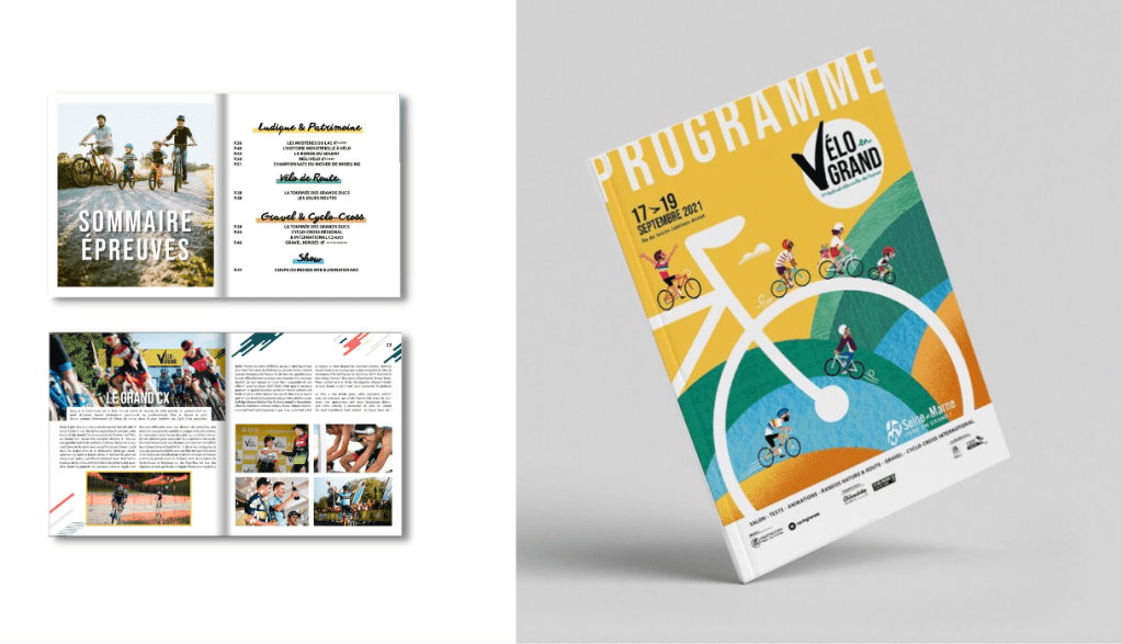 Le programme Vélo en Grand est un exemple de production d’un livre broché évènementiel allant de la conception graphique à de la création de contenu.